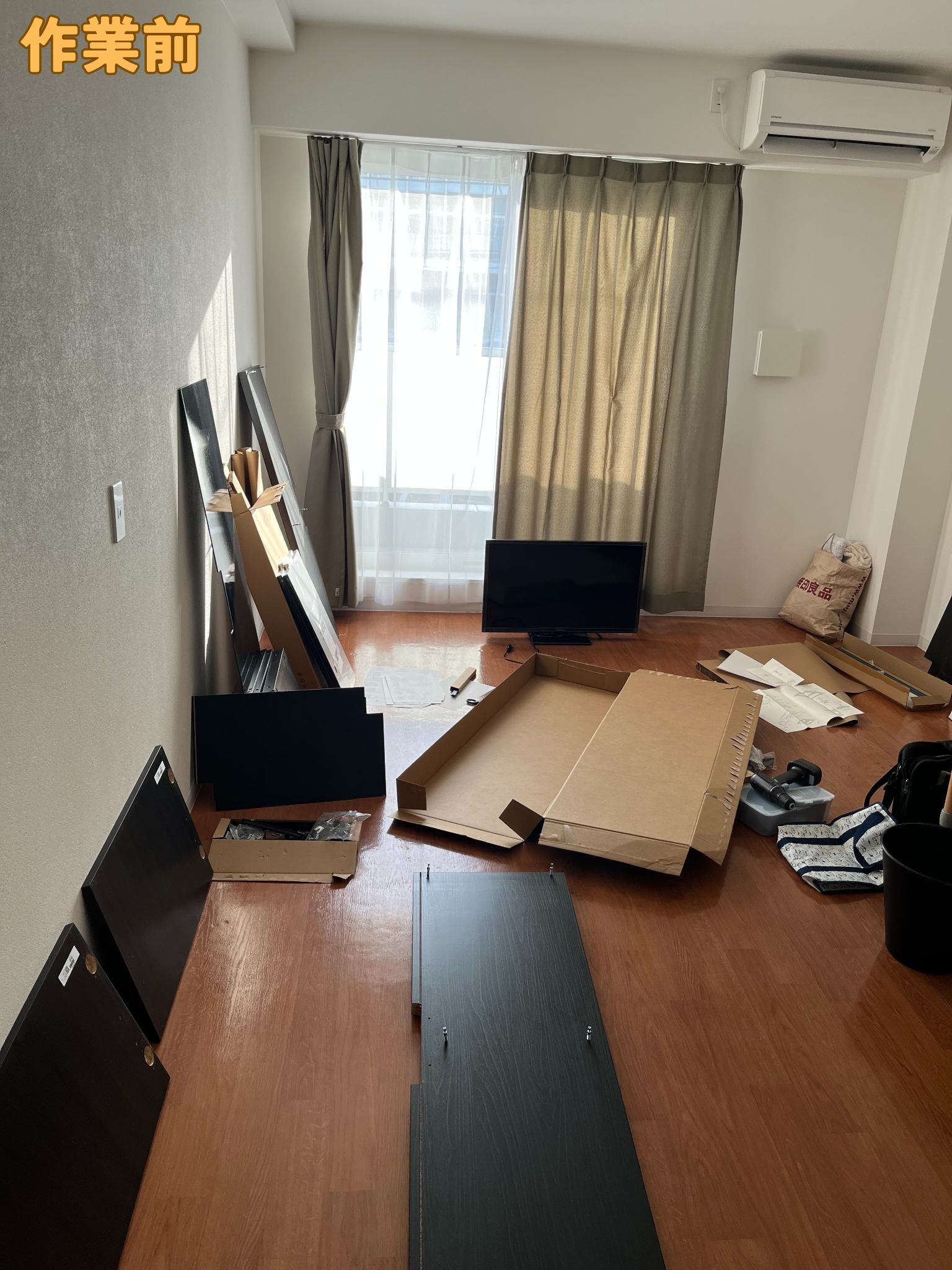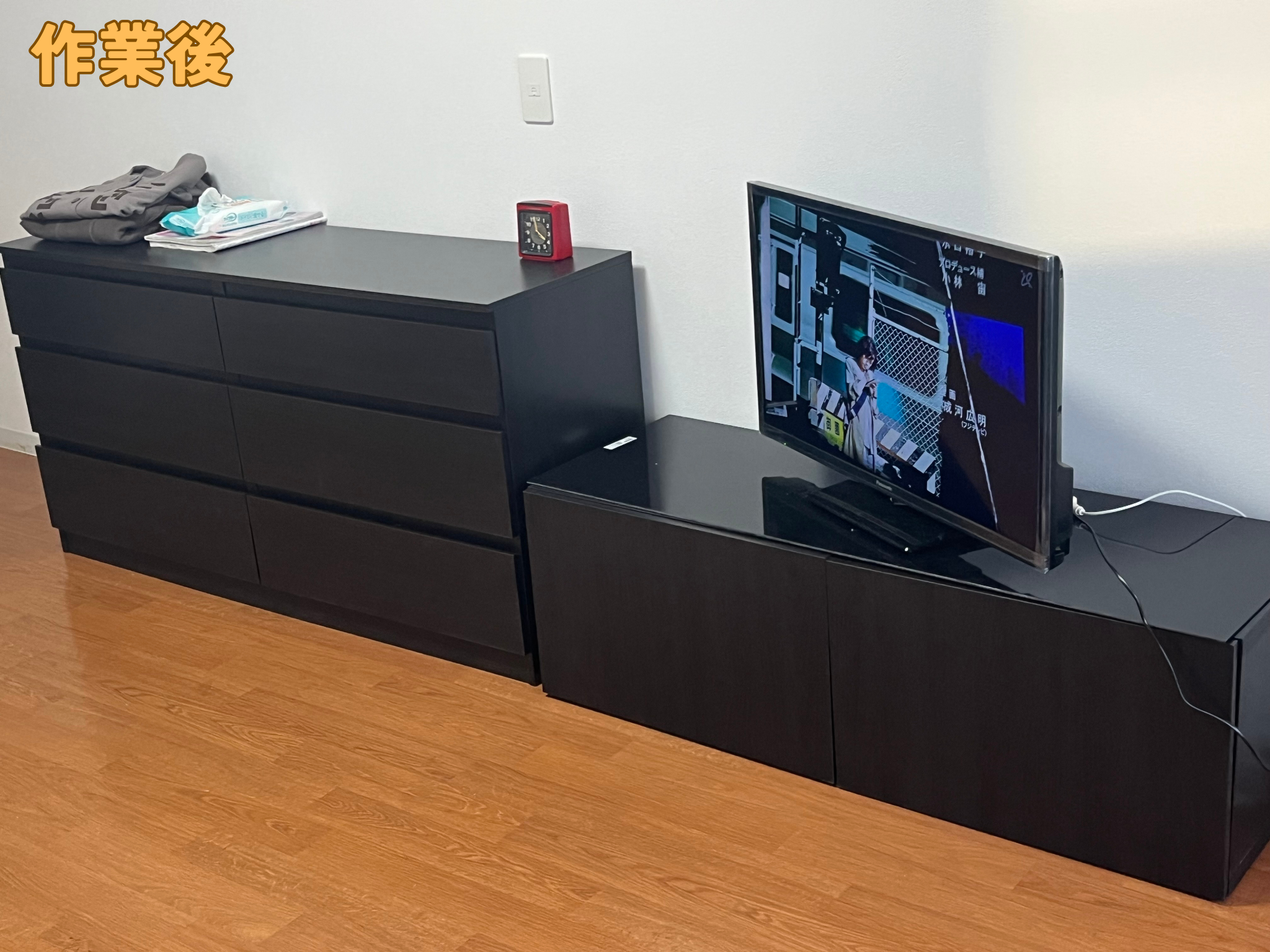 衣類やテレビはご自宅から移動しましたが、テレビ台や収納チェスト(衣装ケース)は新たに購入が必要でした。購入後の組み立てにも時間を要しましたが、スタッフが責任を持って対応し、夕方までにすべて完了しました。